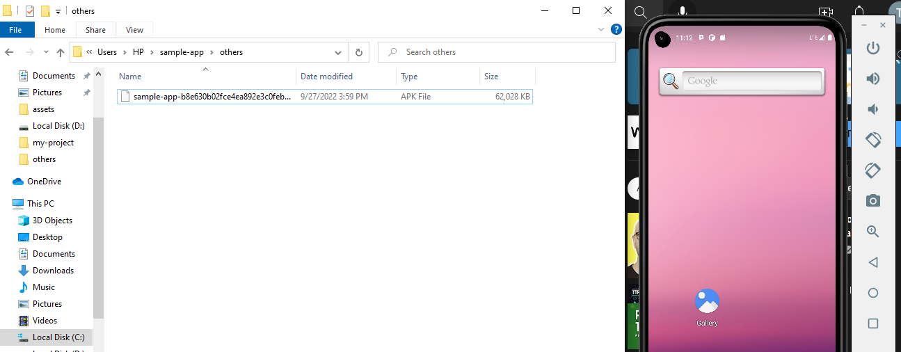 - Open the emulator and ‘others’ folder in your app directory side-by-side as shown in image 13.