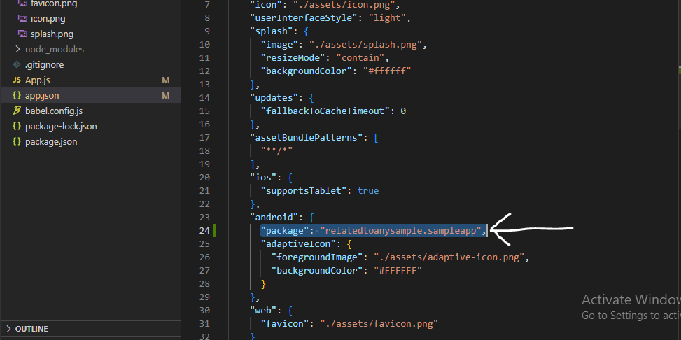 - Now, you have to make some changes to the app.json file.