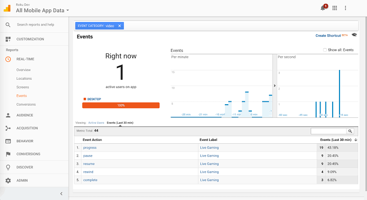 Page-views and events that occur on ROKU devices that have your channel installed will generate report data within your Google Analytics Account.