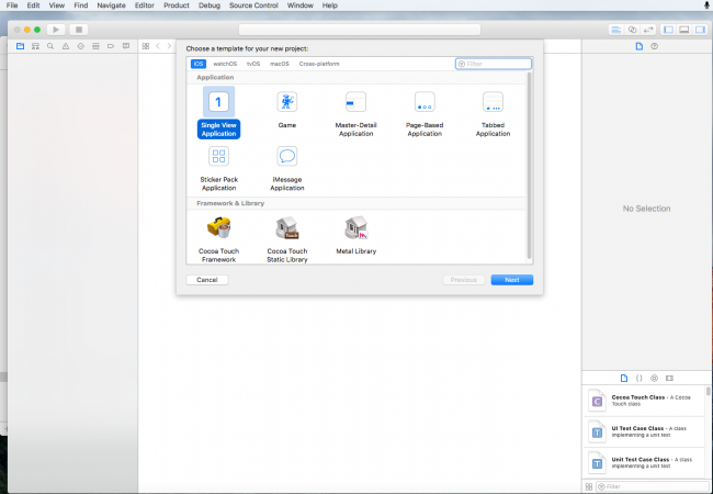 - Now, tap on the iOS tab and select, ‘Single View Application’.